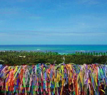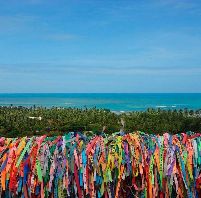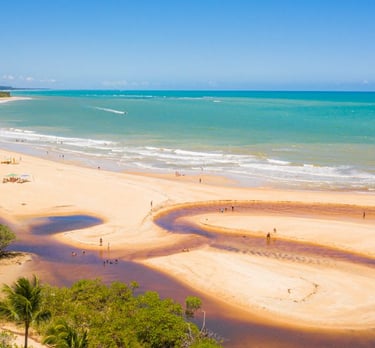 Arraial d'Ajuda, localizado em Porto Seguro, Bahia, é um destino turístico famoso por suas belas praias, clima descontraído e ambiente acolhedor.